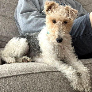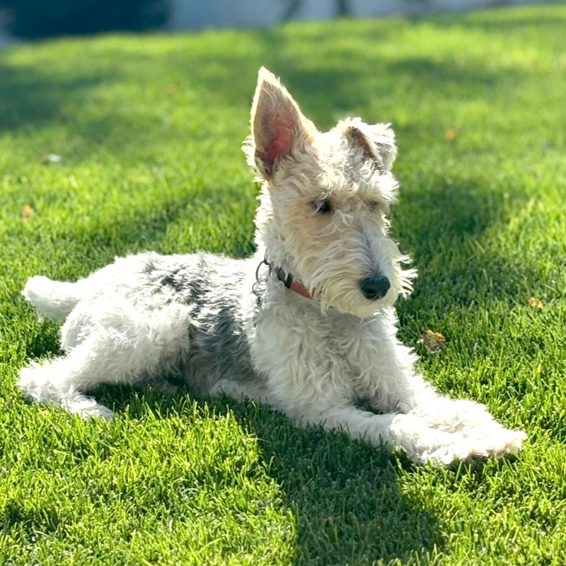 Grateful for ATRA’s help, they drove her all the way to her foster home in Seal Beach, arriving there on June 7, 2025. Birdie definitely lucked out with her foster mom, Jill. Jill is a very experienced Wire lover who is very familiar with Wire Fox antics. Jill made sure her home was very secure–no escape routes for Birdie! And, going above and beyond, Jill enrolled Birdie in school for obedience and day care for socialization in addition to training at home.