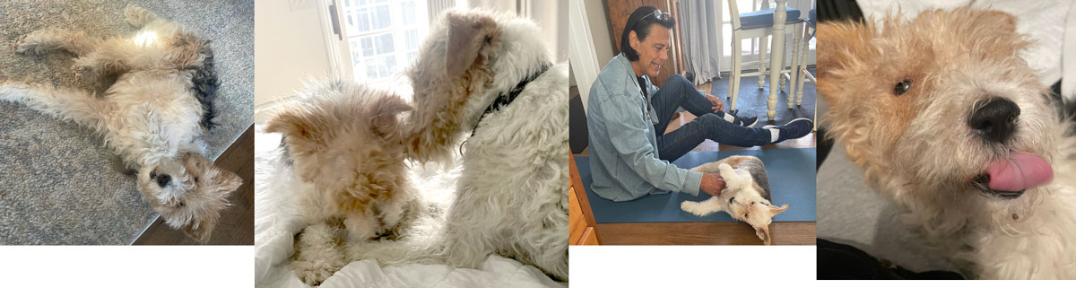 We immediately recognized and later confirmed by DNA that Gingerbread suffered from a genetic condition. Tell-tale signs are an underbite and subluxed patellas, both of which Gingerbread has. Since the condition is rare and unique to Wires, few veterinarians are familiar with it. It causes skeletal dysplasia and explains why Gingerbread was having so much difficulty walking. We had our vet take full body X rays which revealed that in addition to her knees, Gingerbread’s back was affected.