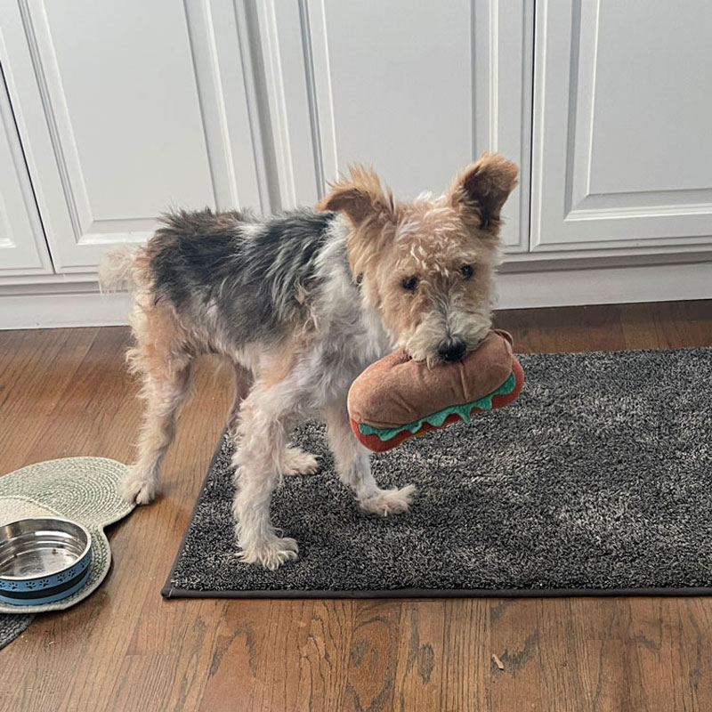 Despite her health issues and delicate body, Gingerbread proved to be a tough, resilient and feisty Wire. She loves walks and her stuffed hedgehogs, gives sweet kisses and can be gentle and playful with other dogs. She has lots of Facebook fans. Her personality and cuteness charms everyone who meets her.