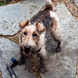 Fortunately, during the routine exam it was discovered that Zeus had bladder stones requiring immediate surgery. He recovered just fine. However, to prevent stones from forming in the future, Zeus eats a prescription diet which ATRA provides. Zeus is relishing the attention and love that Tracy gives him. He is very affectionate and endearing. But watch out if you turn on the hose to water the garden! Zeus turns into a maniac!